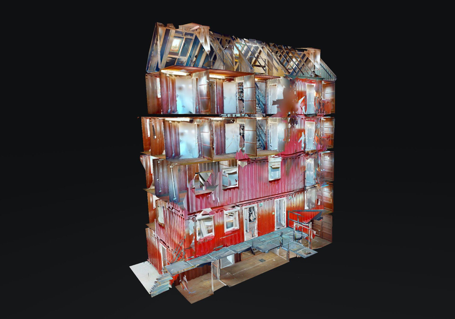 Erkunden Sie die fast 5.000 m² große Trainingshalle mit Übungshäusern, Werkstatt, Einsatzleitwagen, Einsatzfahrzeugen und Übungsszenarien...